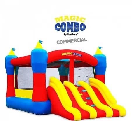 Experience the joy of a magical adventure with the Magic 4 in 1 Combo! This all-in-one inflatable is your ticket to fun and excitement. Designed for kids who love to play, it combines a bounce area, a thrilling slide, a challenging climbing wall, and a basketball hoop into one amazing structure. Whether you're hosting a birthday party or a community event, this combo guarantees hours of active entertainment.